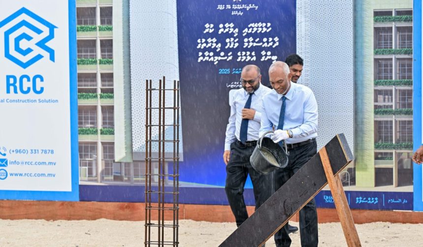 ހުޅުމާލޭގައި ޢިމާރާތް ކުރުމަށް ހަމަޖެހިފައިވާ ވަގްފް އިމާރާތް ”ދާރުއްސަލާމް“ ގެ ބިންގާ ރައީސުލްޖުމްހޫރިއްޔާ ޑރ މުޙައްމަދު މުއިއްޒު އަޅުއްވައިދެއްވައިފި އެވެ.