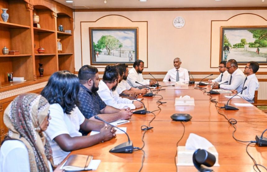 ރައީސުލްޖުމްހޫރިއްޔާ ޑރ. މުޙައްމަދު މުޢިއްޒު، ޓެކްސީގެ ޚިދުމަތް ދިނުމުގައި ކުރިމަތިވާ ދަތިތައް ޙައްލުކޮށް، އެ ޚިދުމަތް އިތުރަށް ހަރުދަނާކުރުމާ ގުޅޭގޮތުން މަޝްވަރާކުރެއްވުމަށް، ޓެކްސީ ޑްރައިވަރސް އެސޯސިއޭޝަނުގެ އިސްވެރިންނާ ބައްދަލުކުރައްވައިފިއެވެ. މި ބައްދަލުކުރެއްވުން ބާއްވާފައިވަނީ ރައީސުލްޖުމްހޫރިއްޔާގެ އޮފީހުގައެވެ.